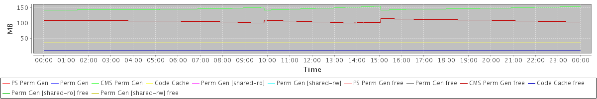 avg(PS Perm Gen) = 0.00 avg(Perm Gen) = 0.00 avg(CMS Perm Gen) = 146.18 avg(Code Cache) = 36.04 avg(Perm Gen [shared-ro]) = 0.00 avg(Perm Gen [shared-rw]) = 0.00 avg(PS Perm Gen free) = 0.00 avg(Perm Gen free) = 0.00 avg(CMS Perm Gen free) = 106.33 avg(Code Cache free) = 10.52 avg(Perm Gen [shared-ro] free) = 0.00 avg(Perm Gen [shared-rw] free) = 0.00