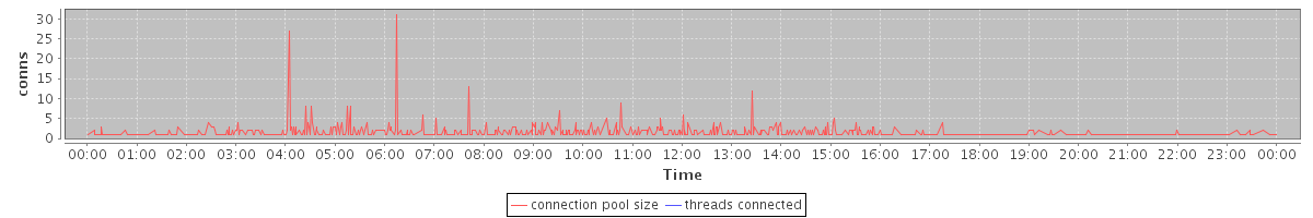 avg(connection pool size) = 0.78 avg(threads connected) = 0.00