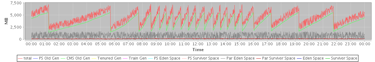 avg(total) = 4517.05 avg(PS Old Gen) = 0.00 avg(CMS Old Gen) = 3573.45 avg(Tenured Gen) = 0.00 avg(Train Gen) = 0.00 avg(PS Eden Space) = 0.00 avg(PS Survivor Space) = 0.00 avg(Par Eden Space) = 813.28 avg(Par Survivor Space) = 130.31 avg(Eden Space) = 0.00 avg(Survivor Space) = 0.00