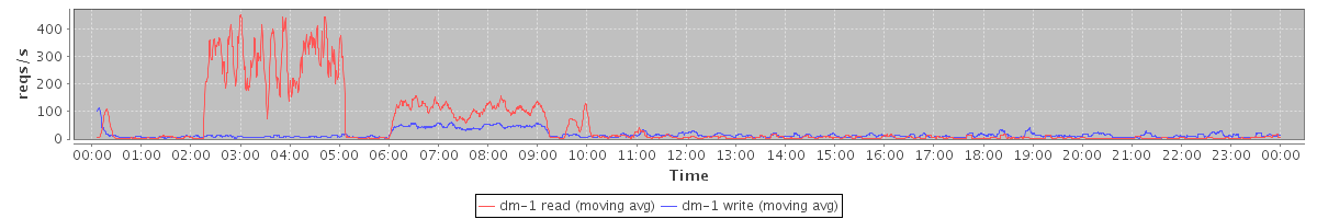 avg(dm-1 read) = 1007.90 avg(dm-1 write) = 239.29