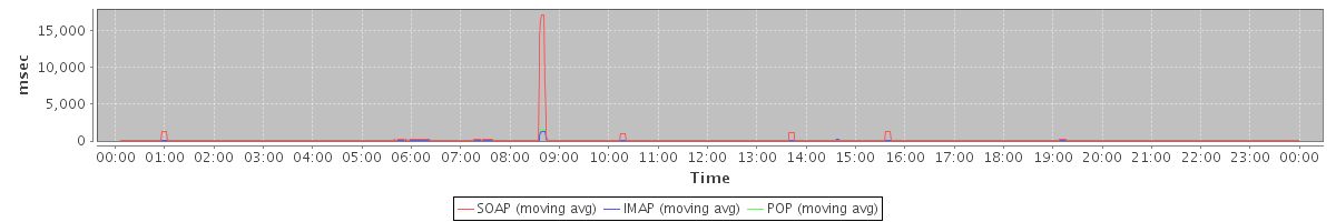Host zm05.stanford.edu: Mailboxd: Response Time by Client Protocol