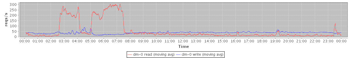avg(dm-1 read) = 834.14 avg(dm-1 write) = 195.04