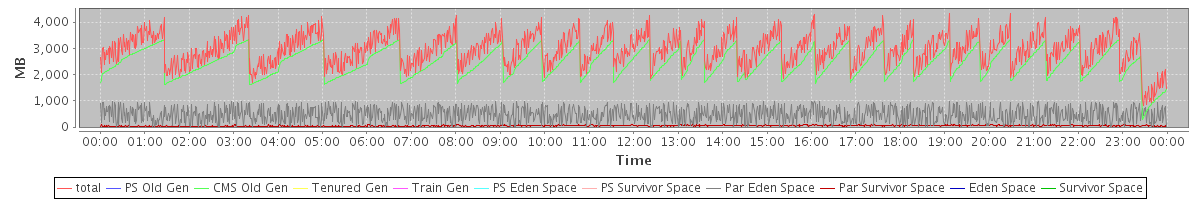 avg(total) = 2976.50 avg(PS Old Gen) = 0.00 avg(CMS Old Gen) = 2454.17 avg(Tenured Gen) = 0.00 avg(Train Gen) = 0.00 avg(PS Eden Space) = 0.00 avg(PS Survivor Space) = 0.00 avg(Par Eden Space) = 475.61 avg(Par Survivor Space) = 46.71 avg(Eden Space) = 0.00 avg(Survivor Space) = 0.00