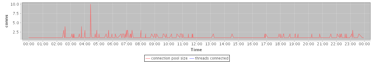 avg(connection pool size) = 0.38 avg(threads connected) = 0.00