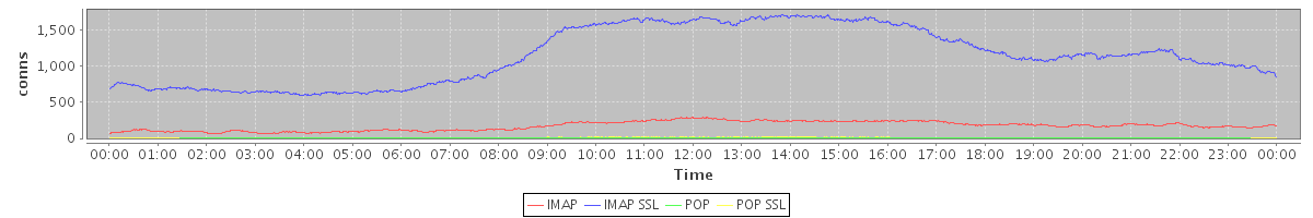 avg(IMAP) = 171.73 avg(IMAP SSL) = 1142.50 avg(POP) = 0.20 avg(POP SSL) = 5.26