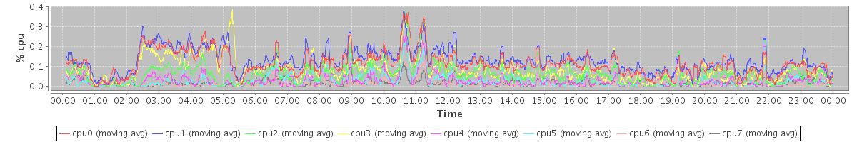 avg(cpu0) = 0.21 avg(cpu1) = 0.18 avg(cpu2) = 0.06 avg(cpu3) = 0.06 avg(cpu4) = 0.04 avg(cpu5) = 0.04 avg(cpu6) = 0.03 avg(cpu7) = 0.02