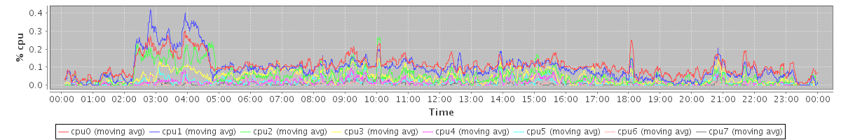 avg(cpu0) = 0.11 avg(cpu1) = 0.10 avg(cpu2) = 0.05 avg(cpu3) = 0.04 avg(cpu4) = 0.02 avg(cpu5) = 0.02 avg(cpu6) = 0.01 avg(cpu7) = 0.01