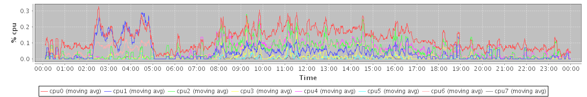 avg(cpu0) = 0.09 avg(cpu1) = 0.19 avg(cpu2) = 0.05 avg(cpu3) = 0.05 avg(cpu4) = 0.04 avg(cpu5) = 0.04 avg(cpu6) = 0.05 avg(cpu7) = 0.05