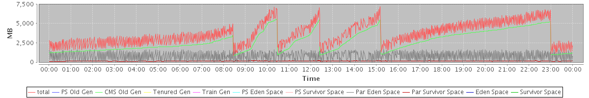 avg(total) = 3640.06 avg(PS Old Gen) = 0.00 avg(CMS Old Gen) = 2667.25 avg(Tenured Gen) = 0.00 avg(Train Gen) = 0.00 avg(PS Eden Space) = 0.00 avg(PS Survivor Space) = 0.00 avg(Par Eden Space) = 823.87 avg(Par Survivor Space) = 148.95 avg(Eden Space) = 0.00 avg(Survivor Space) = 0.00
