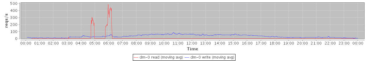 avg(dm-0 read) = 656.73 avg(dm-0 write) = 1091.66