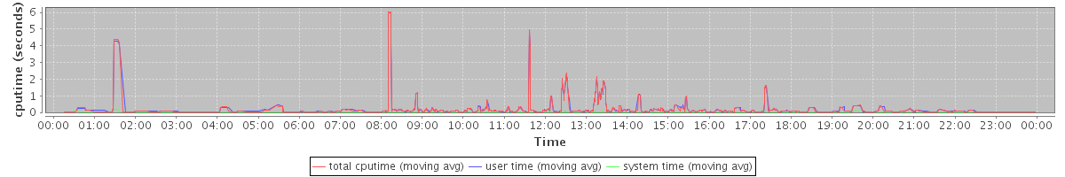 avg(tripwire) = 2316.50 avg(updatedb) = 28.35 avg(java) = 821.28 avg(zm-audit) = 103.00 avg(gzip) = 2027.00 avg(mysqld) = 147.06 avg(mysqldump) = 1440.00 avg(zmmailboxd) = 607.44 avg(zmstat-allprocs) = 14.94 avg(zmcompresslogs) = 1514.75