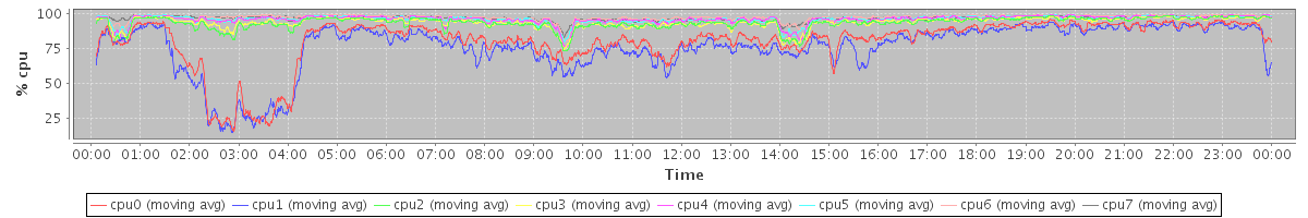 avg(cpu0) = 1.10 avg(cpu1) = 1.08 avg(cpu2) = 0.80 avg(cpu3) = 0.75 avg(cpu4) = 0.57 avg(cpu5) = 0.51 avg(cpu6) = 0.36 avg(cpu7) = 0.35