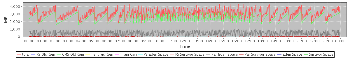 avg(total) = 3118.28 avg(PS Old Gen) = 0.00 avg(CMS Old Gen) = 2563.78 avg(Tenured Gen) = 0.00 avg(Train Gen) = 0.00 avg(PS Eden Space) = 0.00 avg(PS Survivor Space) = 0.00 avg(Par Eden Space) = 484.09 avg(Par Survivor Space) = 70.41 avg(Eden Space) = 0.00 avg(Survivor Space) = 0.00