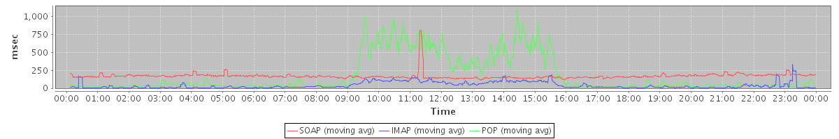 Host zm04.stanford.edu: Mailboxd: Response Time by Client Protocol