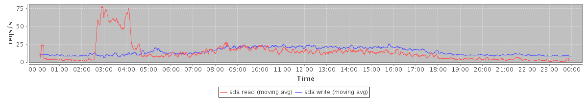 avg(sda read) = 13.71 avg(sda write) = 14.94
