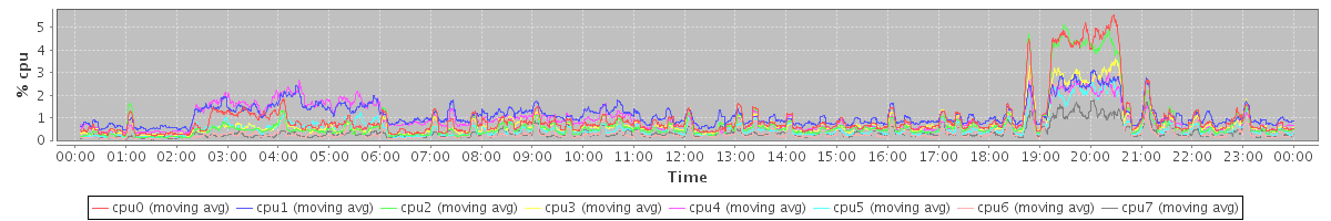 avg(cpu0) = 0.17 avg(cpu1) = 0.18 avg(cpu2) = 0.08 avg(cpu3) = 0.08 avg(cpu4) = 0.08 avg(cpu5) = 0.07 avg(cpu6) = 0.04 avg(cpu7) = 0.05