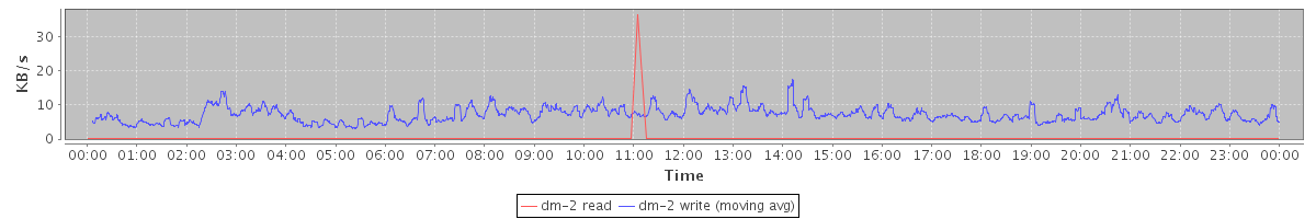 avg(dm-3 read) = 0.54 avg(dm-3 write) = 6.66