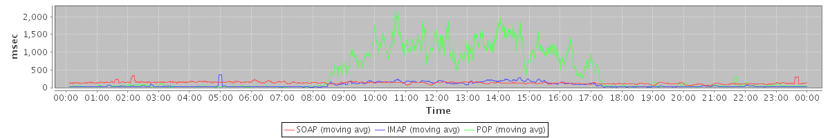 Host zm01.stanford.edu: Mailboxd: Response Time by Client Protocol
