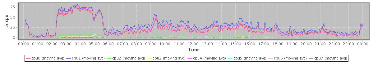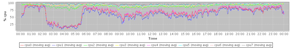 avg(cpu0) = 1.48 avg(cpu1) = 1.40 avg(cpu2) = 0.98 avg(cpu3) = 0.89 avg(cpu4) = 1.15 avg(cpu5) = 0.60 avg(cpu6) = 0.52 avg(cpu7) = 0.40