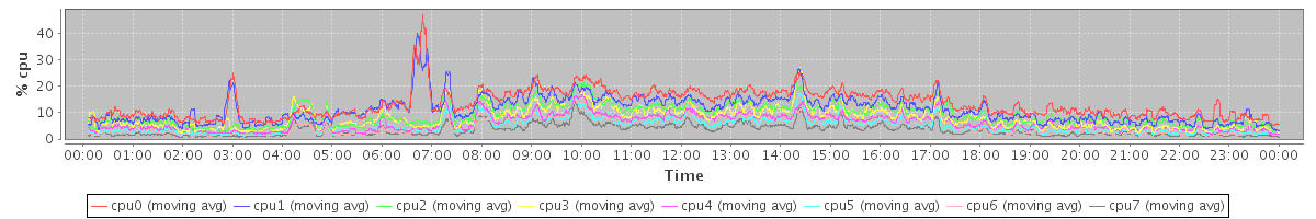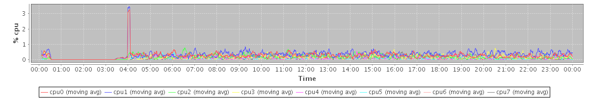 avg(cpu0) = 0.36 avg(cpu1) = 0.32 avg(cpu2) = 0.28 avg(cpu3) = 0.27 avg(cpu4) = 0.20 avg(cpu5) = 0.17 avg(cpu6) = 0.11 avg(cpu7) = 0.12