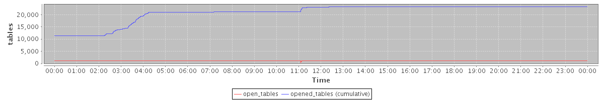 avg(open_tables) = 1199.05 avg(opened_tables (cumulative)) = 20800.56