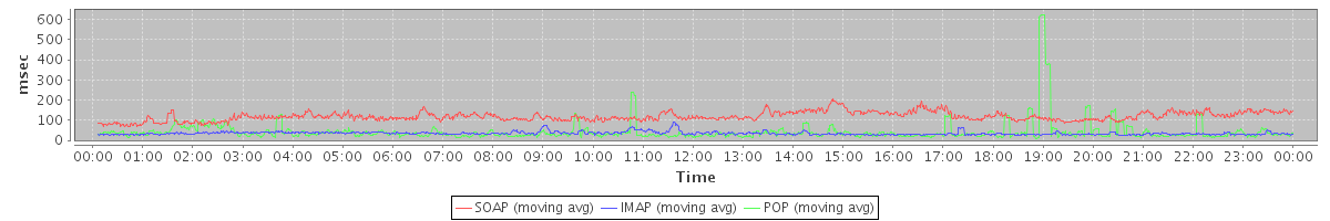 Host zm01.stanford.edu: Mailboxd: Response Time by Client Protocol