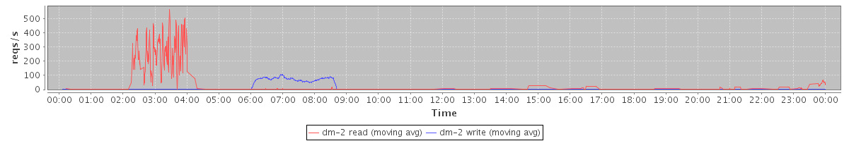 avg(dm-2 read) = 17.96 avg(dm-2 write) = 8.48