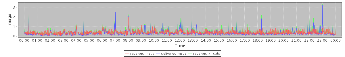 avg(received msgs) = 0.37 avg(delivered msgs) = 0.30 avg(received x rcpts) = 0.44