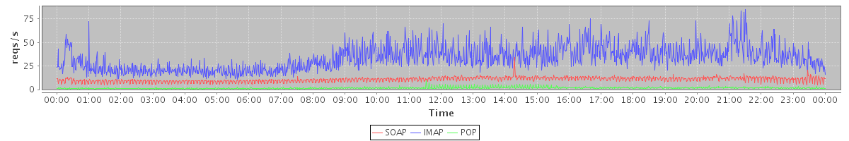 Host zm04.stanford.edu: Mailboxd: Request Rate by Client Protocol