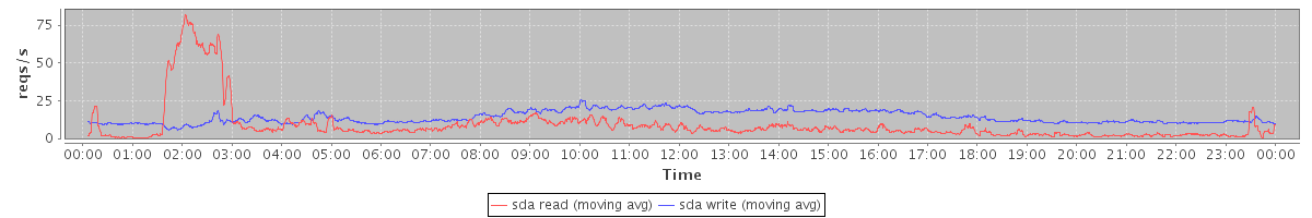 avg(sda read) = 8.87 avg(sda write) = 14.14