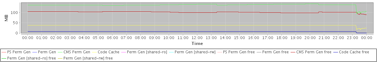 avg(PS Perm Gen) = 0.00 avg(Perm Gen) = 0.00 avg(CMS Perm Gen) = 137.44 avg(Code Cache) = 37.80 avg(Perm Gen [shared-ro]) = 0.00 avg(Perm Gen [shared-rw]) = 0.00 avg(PS Perm Gen free) = 0.00 avg(Perm Gen free) = 0.00 avg(CMS Perm Gen free) = 102.41 avg(Code Cache free) = 8.12 avg(Perm Gen [shared-ro] free) = 0.00 avg(Perm Gen [shared-rw] free) = 0.00