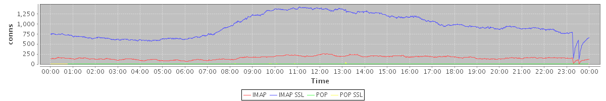 Host zm07.stanford.edu: Mailboxd: Active Connections by Client Protocol