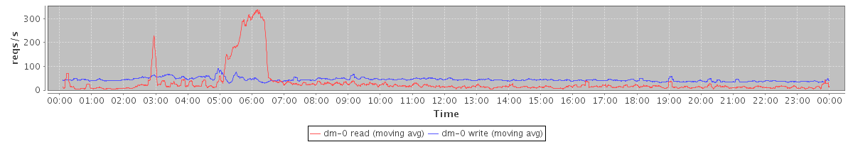 avg(dm-1 read) = 369.06 avg(dm-1 write) = 569.01