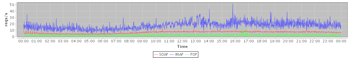 Host zm06.stanford.edu: Mailboxd: Request Rate by Client Protocol