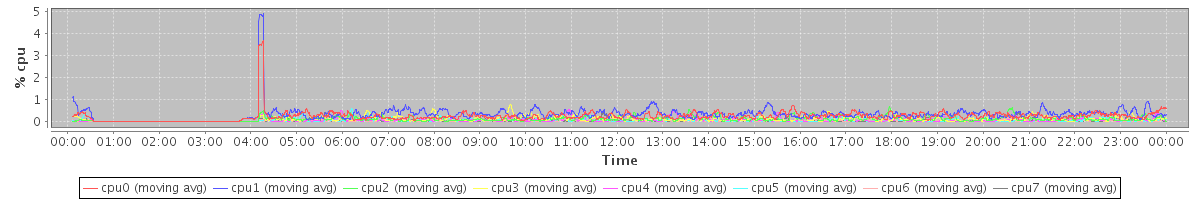 avg(cpu0) = 0.24 avg(cpu1) = 0.33 avg(cpu2) = 0.11 avg(cpu3) = 0.11 avg(cpu4) = 0.07 avg(cpu5) = 0.07 avg(cpu6) = 0.05 avg(cpu7) = 0.05
