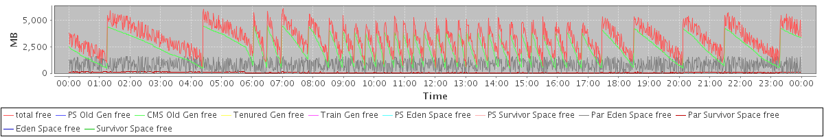 avg(total free) = 3288.27 avg(PS Old Gen free) = 0.00 avg(CMS Old Gen free) = 2413.40 avg(Tenured Gen free) = 0.00 avg(Train Gen free) = 0.00 avg(PS Eden Space free) = 0.00 avg(PS Survivor Space free) = 0.00 avg(Par Eden Space free) = 806.53 avg(Par Survivor Space free) = 68.33 avg(Eden Space free) = 0.00 avg(Survivor Space free) = 0.00