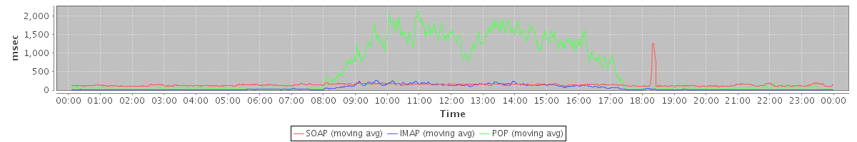 avg(IMAP) = 280.77 avg(IMAP SSL) = 1266.89 avg(POP) = 0.13 avg(POP SSL) = 6.80
