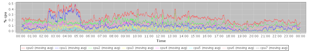 avg(cpu0) = 0.09 avg(cpu1) = 0.21 avg(cpu2) = 0.05 avg(cpu3) = 0.06 avg(cpu4) = 0.04 avg(cpu5) = 0.04 avg(cpu6) = 0.06 avg(cpu7) = 0.04