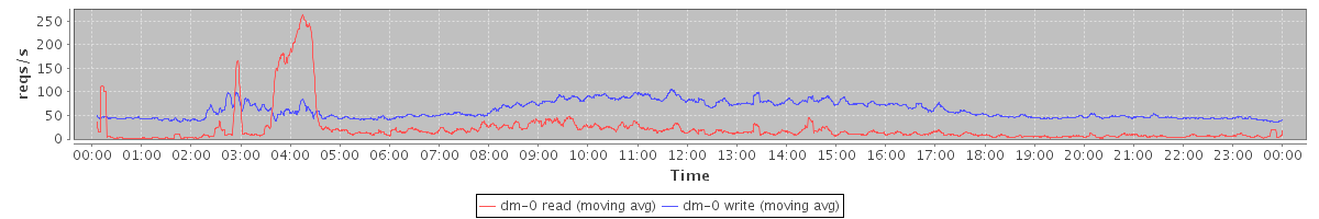 avg(dm-1 read) = 34.57 avg(dm-1 write) = 14.36