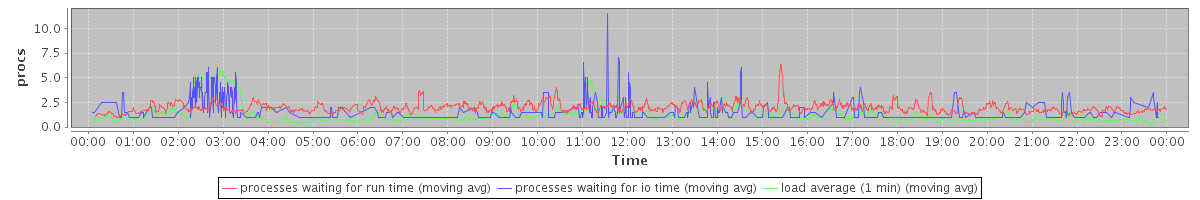 avg(processes waiting for run time) = 1.45 avg(processes waiting for io time) = 0.41 avg(load average (1 min)) = 1.27