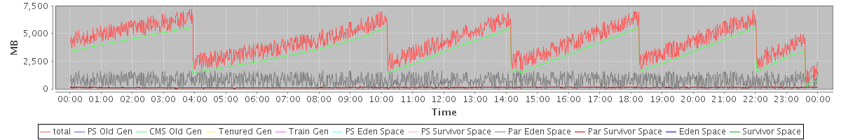 avg(total) = 4362.32 avg(PS Old Gen) = 0.00 avg(CMS Old Gen) = 3438.36 avg(Tenured Gen) = 0.00 avg(Train Gen) = 0.00 avg(PS Eden Space) = 0.00 avg(PS Survivor Space) = 0.00 avg(Par Eden Space) = 802.97 avg(Par Survivor Space) = 120.99 avg(Eden Space) = 0.00 avg(Survivor Space) = 0.00