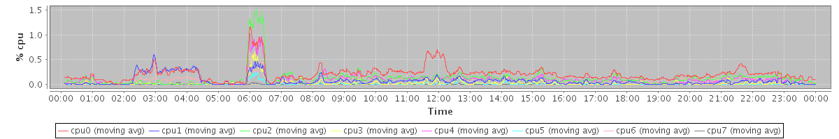 avg(cpu0) = 0.09 avg(cpu1) = 0.21 avg(cpu2) = 0.05 avg(cpu3) = 0.06 avg(cpu4) = 0.04 avg(cpu5) = 0.03 avg(cpu6) = 0.06 avg(cpu7) = 0.05