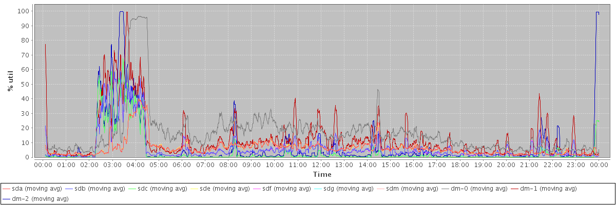 avg(sda) = 6.35 avg(sdb) = 6.76 avg(sdc) = 4.13 avg(sde) = 6.32 avg(sdf) = 6.75 avg(sdg) = 4.13 avg(sdm) = 6.38 avg(dm-0) = 17.02 avg(dm-1) = 12.82 avg(dm-2) = 7.25