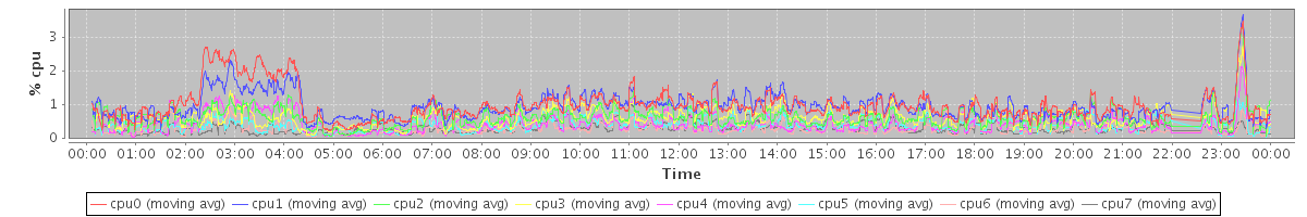 avg(cpu0) = 0.13 avg(cpu1) = 0.15 avg(cpu2) = 0.09 avg(cpu3) = 0.09 avg(cpu4) = 0.07 avg(cpu5) = 0.05 avg(cpu6) = 0.03 avg(cpu7) = 0.02