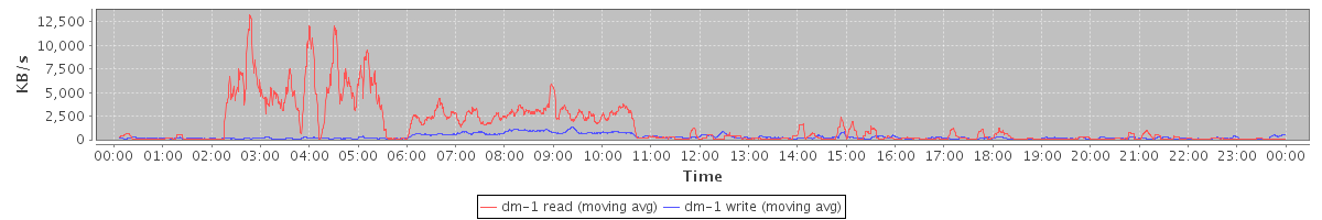 avg(dm-1 read) = 1445.08 avg(dm-1 write) = 293.20