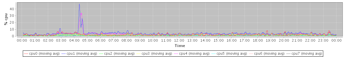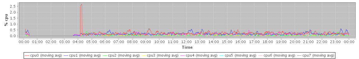 avg(cpu0) = 0.19 avg(cpu1) = 0.16 avg(cpu2) = 0.05 avg(cpu3) = 0.04 avg(cpu4) = 0.08 avg(cpu5) = 0.04 avg(cpu6) = 0.02 avg(cpu7) = 0.03