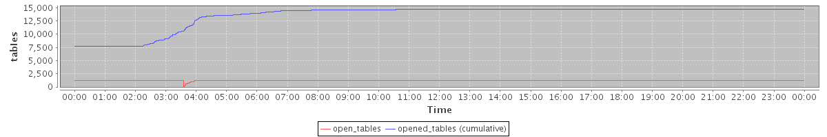 avg(open_tables) = 1192.88 avg(opened_tables (cumulative)) = 13520.33