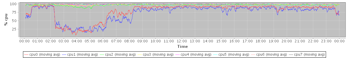 avg(cpu0) = 0.79 avg(cpu1) = 0.81 avg(cpu2) = 0.46 avg(cpu3) = 0.37 avg(cpu4) = 0.25 avg(cpu5) = 0.42 avg(cpu6) = 0.21 avg(cpu7) = 0.16