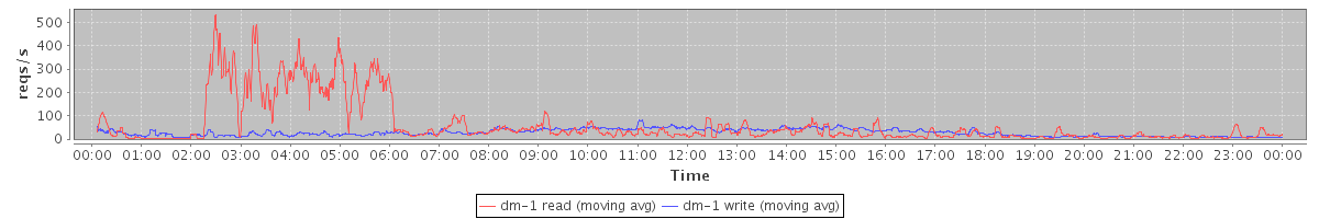 avg(dm-1 read) = 1074.96 avg(dm-1 write) = 457.12