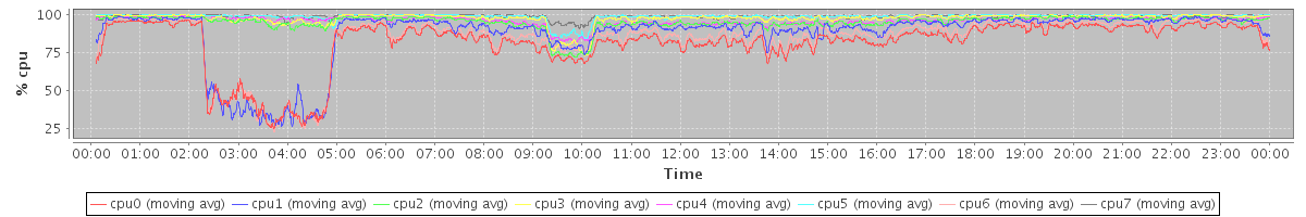 avg(cpu0) = 1.08 avg(cpu1) = 0.69 avg(cpu2) = 0.83 avg(cpu3) = 0.48 avg(cpu4) = 0.62 avg(cpu5) = 0.27 avg(cpu6) = 0.69 avg(cpu7) = 0.17